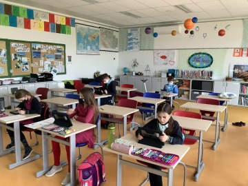 Čtvrťáci se rozdělili na dvě skupiny – na střídačku bylo více dětí doma a méně ve škole – a naopak. J Obě skupiny pilně pracovaly. Hned v pondělí jsme si po slavnostní „onlajnové“ assembly rozdali vysvědčení a zhodnotili uplynulý půlrok. V úterý jsme si opět užili centra aktivit. Všechny početní operace máme opravdu v malíku a slovní úlohy řešíme s přehledem. Ve středu jsme si povídali se Standou o tom, kolik času trávíme s různými technologiemi a oslavili svátek i narozeniny našich spolužáků. No a čtvrtek, to byl malý pátek. Uteklo to jako voda a jsou tu prázdniny! My už se ale stejně těšíme, až se všichni potkáme ve škole.