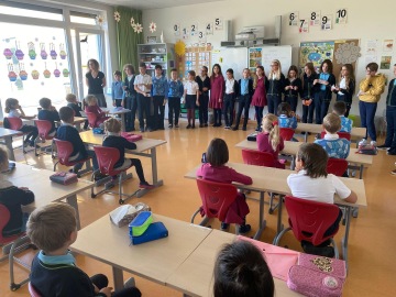 On Friday we went out into our OG Community to spread some of the knowledge we've gained and the work that we have done. Our Class 5 students went down a rung on the ladder into the Class 4 classroom to share their Community Help posters. They know that the 4th graders will one day wear their (the 5th graders') shoes, so they want to bestow upon them their vast knowledge. I'm sure the 4th graders recognized the leadership skills in their primary school superiors and will follow in kind. Thanks to the 5th graders for their hard work and presentations.