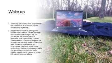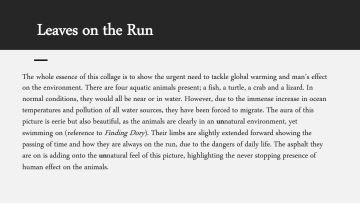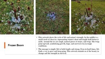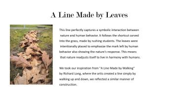 Studenti se věnovali tvorbě environmentálního umění v areálu školy za využití nalezených materiálů, s respektem k přírodě a s minimálním dopadem na životní prostředí. Během 45 minut vytvořili umělecká díla, která prezentovali pomocí jednoho snímku prezentace, do něhož zahrnuli fotografii díla a jeho stručný popis.