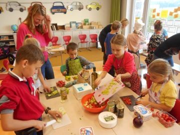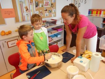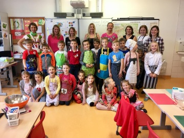 Food festival jsme si u nás ve třídě užili v řeckém stylu. Laskavé maminky se chopily rolí šéfkuchařek, dostaly recept a skupinku šikovných kuchařů. Všichni se pustili s radostí do práce. Děti pečlivě plnily instrukce a již za chvíli se třída rozvoněla kořením, čerstvým ovocem, zeleninou a koprem. Ve skupinkách se krájelo, míchalo, peklo a vše ve svižném tempu. Recepty se náramně vydařily, děti si pochutnaly a odpoledne na našem stánku sklidily velký úspěch za všechny dobroty. Děti zvládly roli kuchařů na jedničku, ovšem bez skvělého vedení našich maminek by to nešlo. Perfektní spolupráce, která přinesla ovoce…a nejen to. Děkujeme za parádní den!