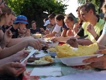 Miky Plešák zmiňoval v dotazníku jako jeden z nejsilnějších zážitků fazolový guláš, za který sehrané duo šéfkuchařů Štěpán Slaný – Honza Duben aspiruje již několik let na bačovskou mišelínskou hvězdu. Baštu jsme ochutili jednou nalezenou houbou, ale protože to lanýž nebyl, tak chuť pěti kil cibule, česneku a fazolí s párkem babka přebít nedokázala. Jestliže si Miky svou poznámkou z kluků utahoval, po přejezdu do Banátu jsme zažili kulinářský ráj. Vynikající zelenina, která vyrůstala ze skutečné hlíny a byla sklízena, až když uzrála. Absence glutamátu sodného v domácích vývarech. Domácí sýr a čerstvě stlučené máslo… Kuskovi z Gerníku, Pelnářovi z Bígru a kuchařky z Eibentálu se o nás starali vzorně a udělali z každé snídaně a večeře zážitek. Co na to naši studenti?
