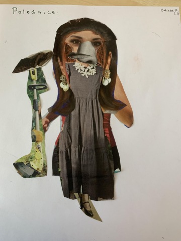 Aby to nebyla nuda a aby využili doma válející se noviny, časopisy a letáky, dostali za úkol vytvořit postavu polednice z výstřižků. Nahlédněte do jejich fantazie.