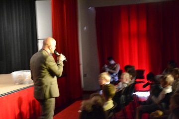 Poslední společná asembly v divadle školy si žádala speciálního hosta. Bylo nám velkým potěšením pozvat k nám Jirku. Pozvání přijal a houf dětí i celý tým ho ještě před začátkem téměř umačkal.
