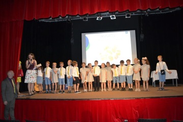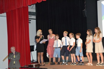 Připomněli jsme si uplynulé pololetí v prezentaci fotek a pak už byl čas na slavnostní předání vysvědčení jednotlivým třídám. V řeči každého z učitelů zněla slova chvály, díků a dojetí.