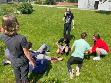 Studenti kvinty A se v pondělí 20. května zúčastnili praktického semináře první pomoci. V pěti skupinách si s lektory vyzkoušeli, co dělat, když nastane situace, kdy je potřeba rychle a správně jednat.