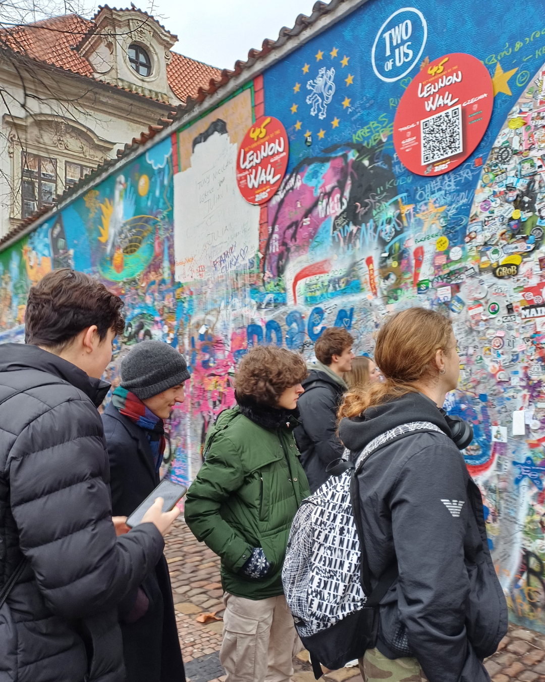 Studenti předmětu IB Visual Arts se vydali na exkurzi za uměním do centra Prahy. Nejprve si připomněli symboliku Lennonovy zdi, slavného pamětního místa, které je už desítky let spojováno s hodnotami svobody, míru a občanského vyjádření.