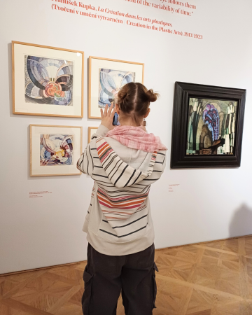 Další část programu je zavedla do Museum Kampa, kde absolvovali komentovanou prohlídku věnovanou Františku Kupkovi – jednomu z nejvýznamnějších českých malířů světového formátu. Seznámili se s jeho uměleckou cestou od realismu přes hledání základní principů a inspirace v přírodě a minulosti i mechanice až k čisté abstrakci, která ho proslavila po celém světě.