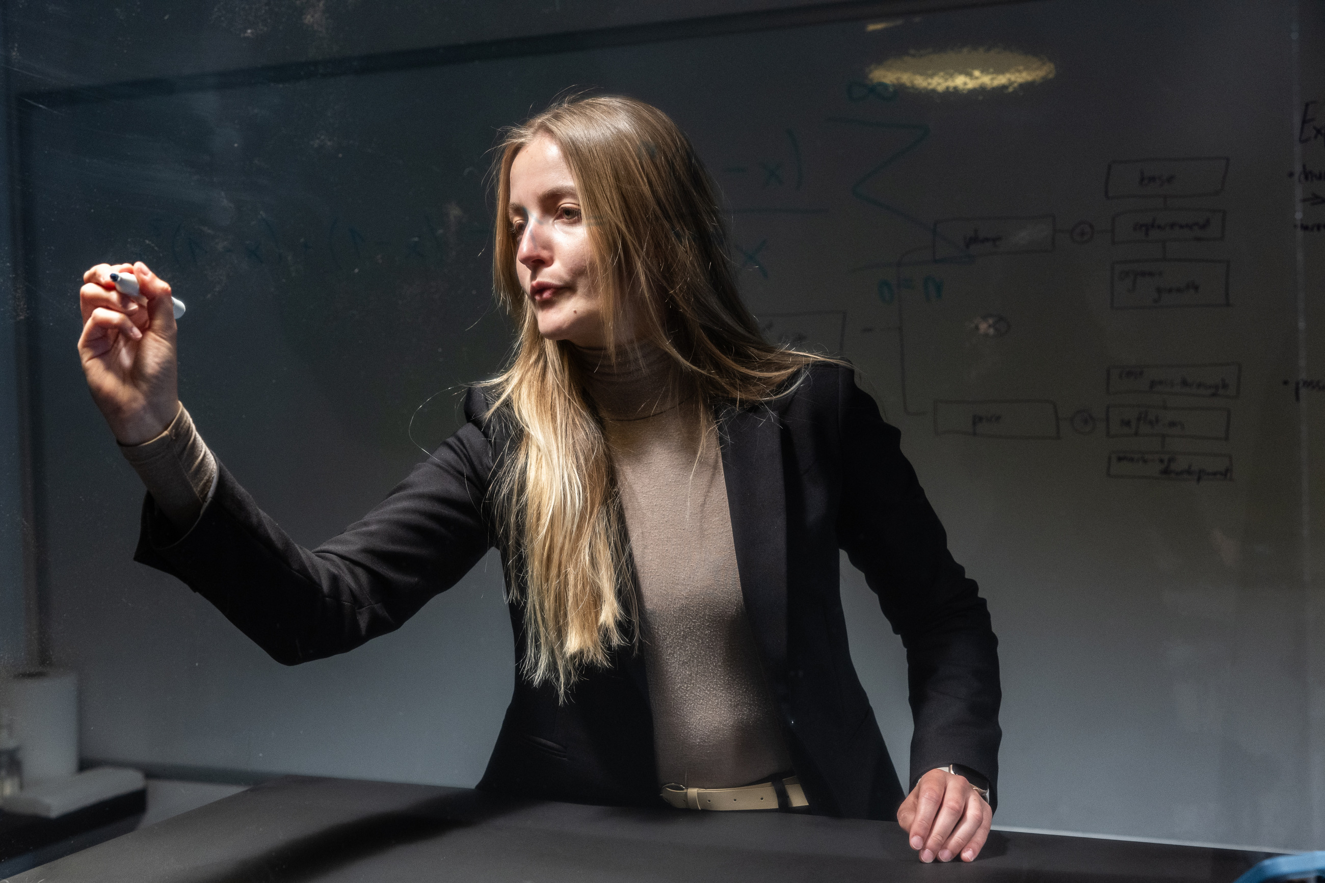 Ředitelkou banky dnes nejsem. Ani vědkyní v tom smyslu, jaký si člověk v mém oboru představuje, tedy že bych někde sama u hustě popsaných tabulí vymýšlela řešení, na jaké ještě nikdo přede mnou nepřišel. Pouze vědecké poznatky aplikuji na něco, co je všude okolo nás.