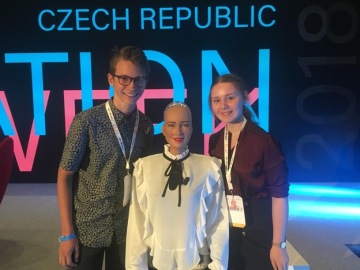 První humanoidní robotka se státním občanstvím baví publikum. Tohle bude jízda, pomyslím si. Uvažte, od mala mi před spaním rodiče četli Isaaca Asimova a první knížka kterou jsem si vypůjčil ze školní knihovny byl Stopařův průvodce po Galaxii.
