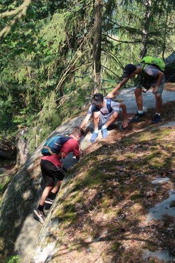 Poslední den zbýval čas už jenom pro výstup na Drábovnu, místo nejstaršího osídlení celého regionu... kupodivu jsme tam našli i pár kamenů na sobě. Žáci tercie A se na výletě naučili pár užitečných věcí. Předně ocenit jídlo, které si sami uvaří, dokázali se v případě nouze postarat o kamarádku nebo spolupracovat za deště při vaření i závěrečném uklízení.