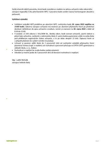 Vyhlášení mimořádného přijímacího řízení do vyšších ročníků gymnázia pro školní rok 2022/2023