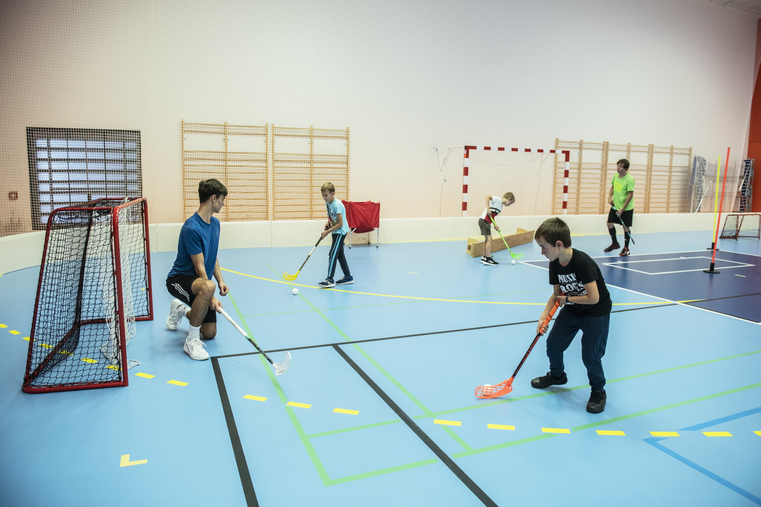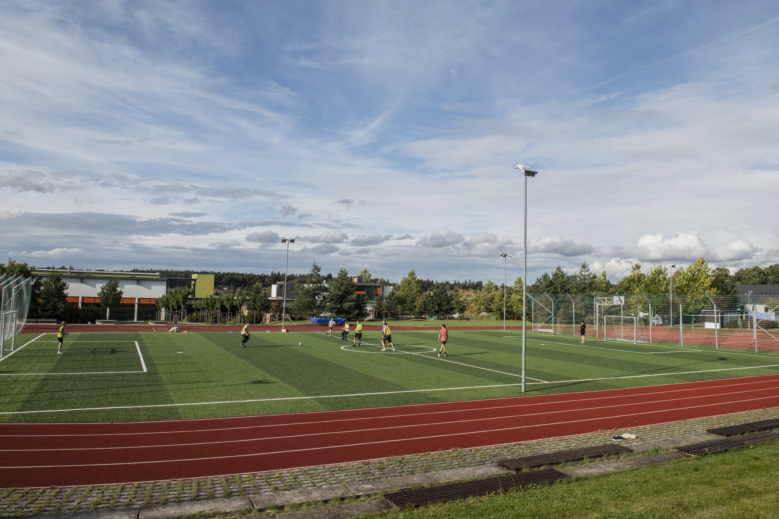 We encourage students to be active outdoors as often as possible, whether on the football pitch or in other outdoor areas. The campus also includes a large indoor sports hall used for floorball, volleyball, and many other sports. Smaller studios for ballet and yoga, as well as a well-equipped fitness centre, are also available.