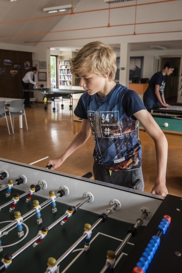 The school dormitories are made up of four buildings, two for boys and two for girls. They are joined together by a social hall. Students often get together here and play ping-pong, billiards or darts. On the terrace outside the hall we hold barbecues and organise discos.