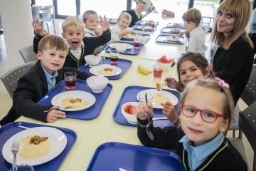 Zakládáme si na čerstvosti a pestrosti. Maso a zeleninu odebíráme od regionálních dodavatelů a naše týdenní jídelníčky plánujeme s důrazem na sezónnost a vyváženost. Stejně jako ve výuce respektujeme i ve školní jídelně individuální potřeby studentů. Jídlo si nemusejí objednávat dopředu, ale vybírají si ho přímo na místě podle toho, na co mají zrovna chuť.